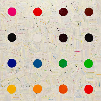 Scott shared, "From my earliest memories I was always drawing and drawn to color as a moth to light. The taxicab yellow and emerald green boxes of Binney & Smith’s Crayola crayons became an inspirational tool of my creativity. A box of 16 crayons was special; it held a color for everything. A box of 64 was the holy grail and came with its own sharpener. Fast-forward 60 years and Crayola crayons and their galaxy of colors continue to inspire my work. Another facet of my work includes the use of words and meditations. Song lyrics, poems, psalms, prayers, and fragments of scripture populate my work. The words and letters are layered upon layers, creating surface movement."